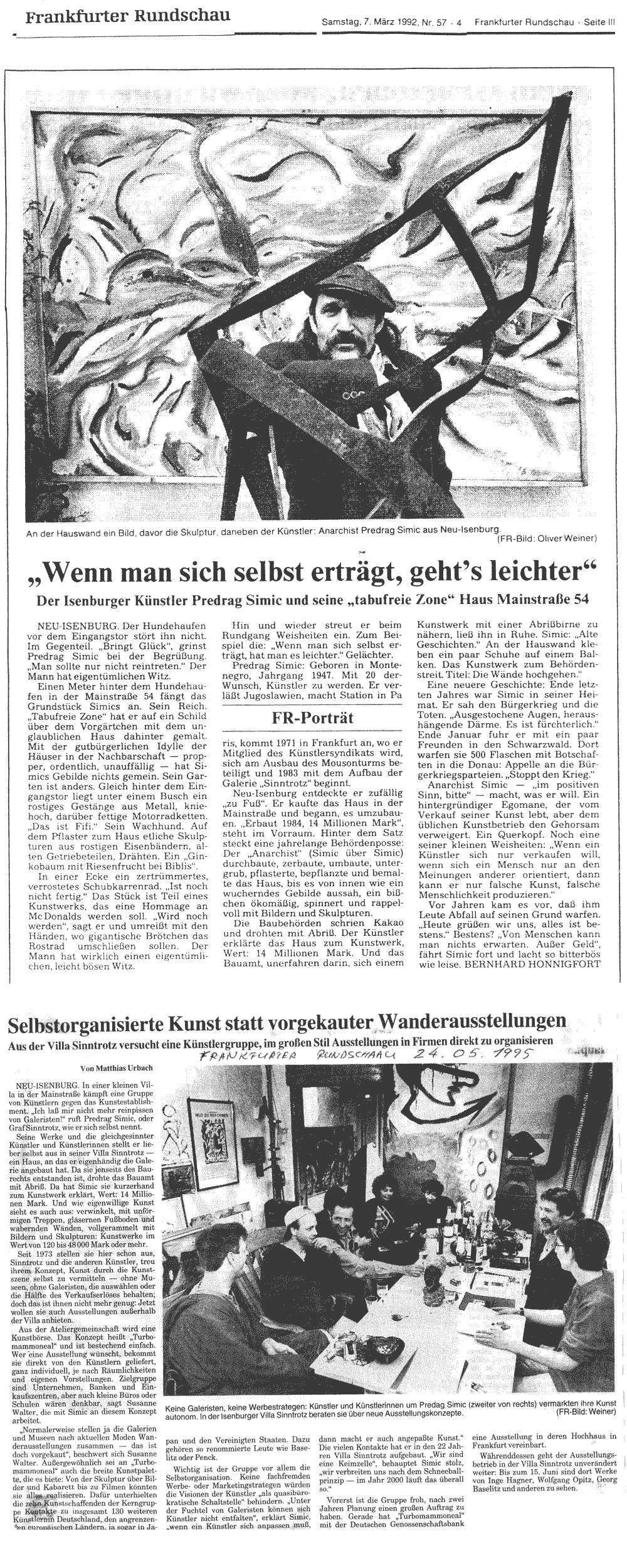 Die Lebensräume hat sich der Künstler für seine Lebensbedürfnisse künstlerisch mit spiritueller Energie in asketisch, puritanisch, mediterranem Stil gestaltet. Das gesamte Kunstwerk beherbergt Bilder von Graf Simic Sinntrotz ( )